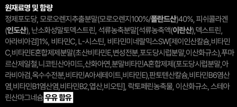 1. 고함량 모로 오렌지 추출물 배합량이 높은 편 (40%)