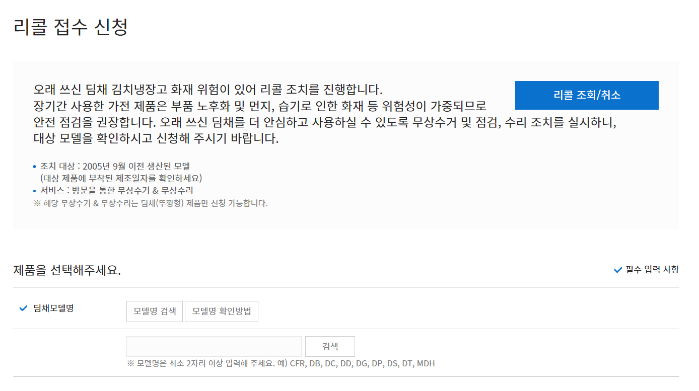 ◆ 위니아 딤채 리콜 모델 무상 수거 & 무상 점검 접수하는 방법